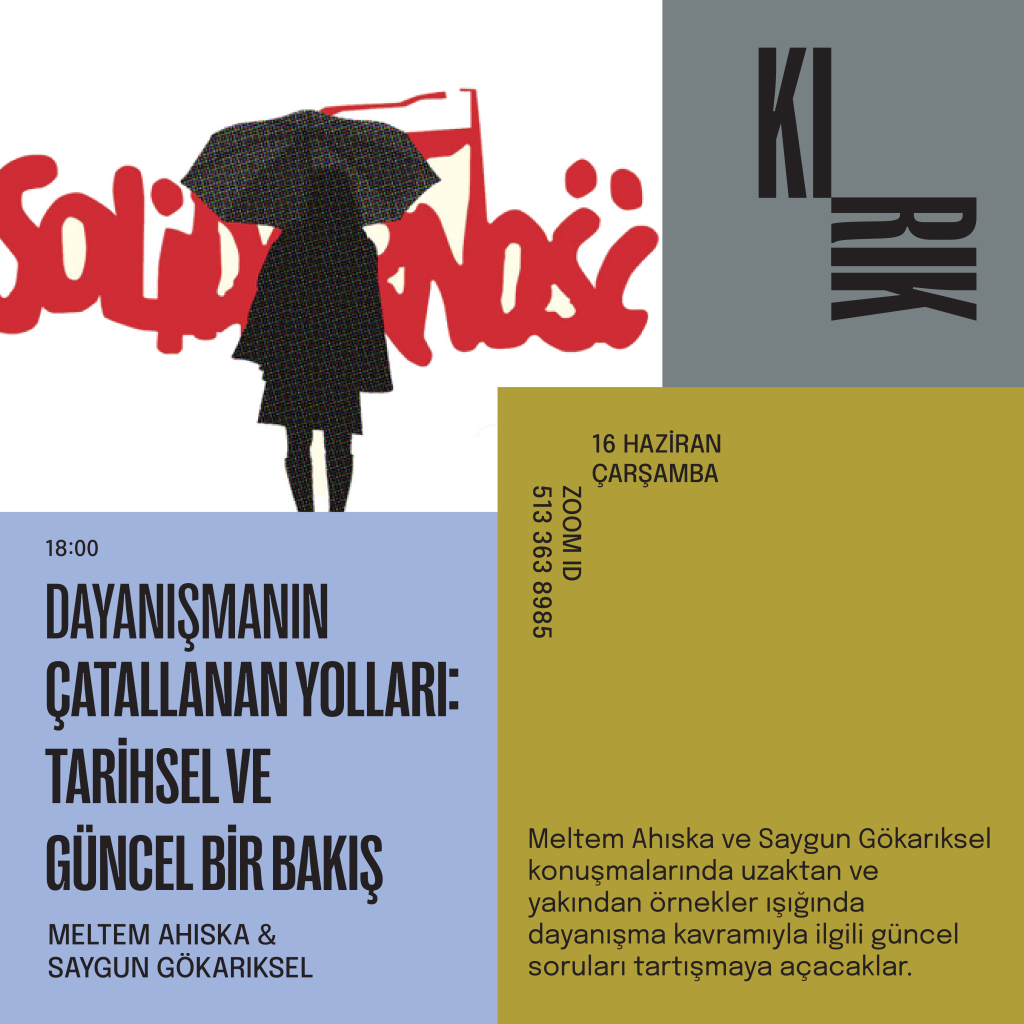 Kapitalizmin yeniden yapılanmasında kritik bir öneme sahip olan 1980’lerde ortaya çıkan Polonya Dayanışma hareketi kendi içinde barındırdığı farklı potansiyellerle bugün bize ne söylüyor? Günümüzde insancıl yardım adı altında kurumsallaşan dayanışma şekillerini nasıl sorunsallaştırabiliriz? Dayanışma bir yükümlülük müdür? Başka nasıl motivasyonlara dayanabilir? Dayanışma, bir topluluğa ait olma, etik ve politika ile nasıl ilişkilenir? Egemenlik modeli dışında bir dayanışma hayal edebilir miyiz?